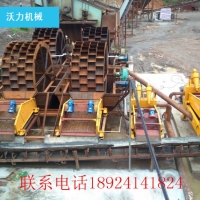 洗砂机工作时,电机通过三角带、减速机、齿轮减速后带动叶轮缓慢转动,砂石有给料槽进入洗槽中,在叶轮的带动下翻滚,并互相研磨,除去覆盖砂石表面的杂质,同时破坏包覆砂粒的水汽层,以利于脱水;同时加水,形成强大水流,及时将杂质及比重小的异物带走,并从溢出口洗槽排出,完成清洗作用。干净的砂石由叶片带走,最后砂石从旋转的叶轮倒入出料槽,完成砂石的清洗作用。